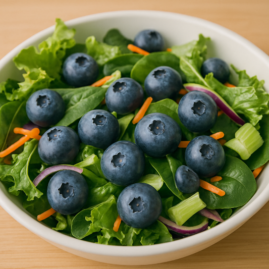 블루베리에는 안토시아닌이라는 항산화 물질이 풍부해 혈관 탄력을 유지하고 고혈압 예방에 좋습니다. 스무디나 샐러드 토핑으로 활용하세요.
