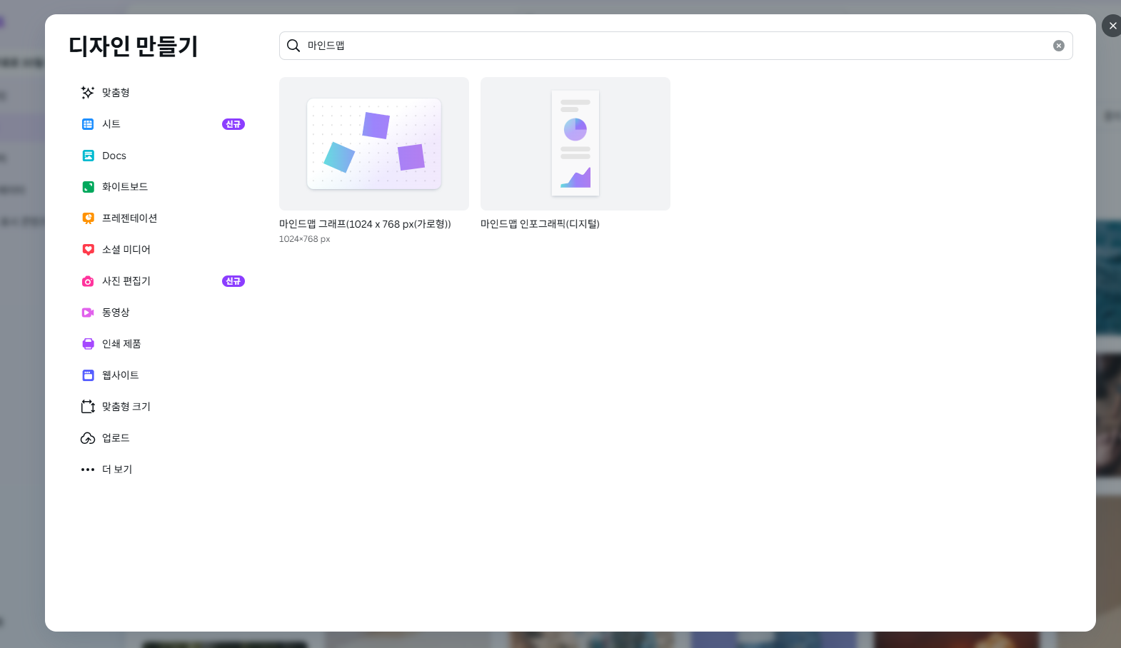 Canva Mind Map 디자인 중심, SNS 공유에 적합 디자이너, 콘텐츠 제작자