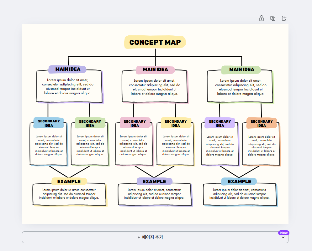 - 전통적인 마인드맵 도구처럼 자동 정렬 기능은 없음